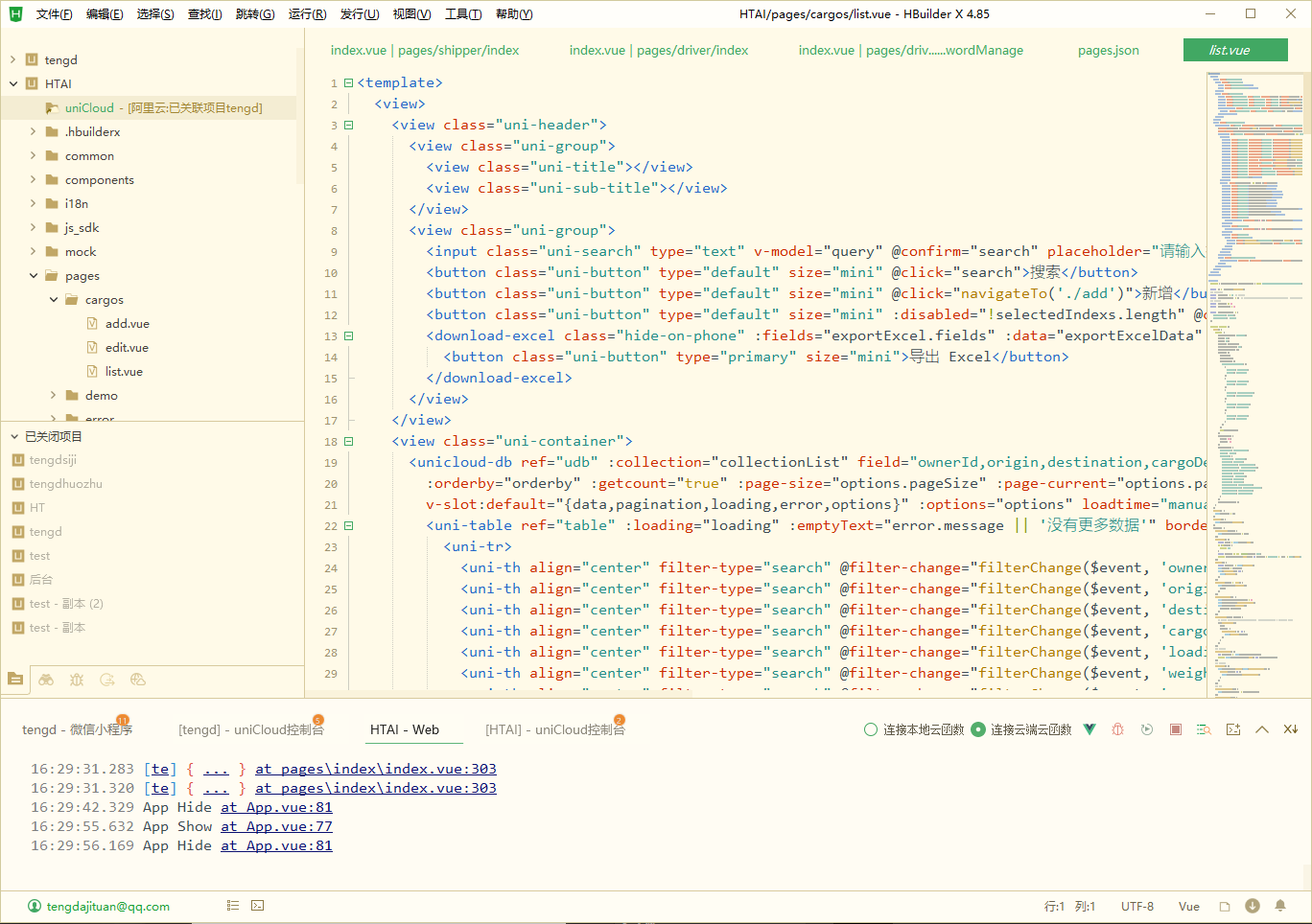 你这个项目中uniCloud代码呢?你试下链接云端云函数