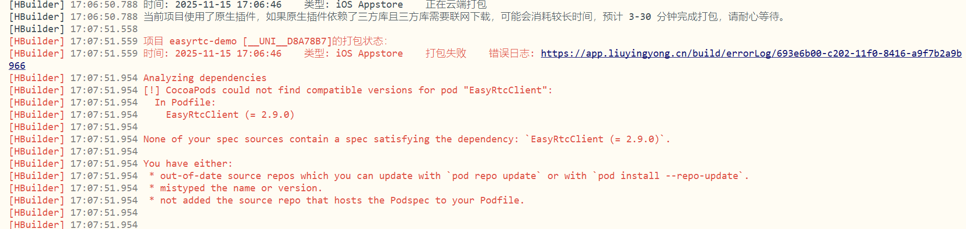 ios 云端打包报错,说找不到指定版本我通过 dependencies-pod-sources 指定了源地址并且包确实存在。
