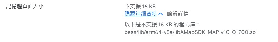 您的應用程式不支援 16 KB 記憶體分頁大小。