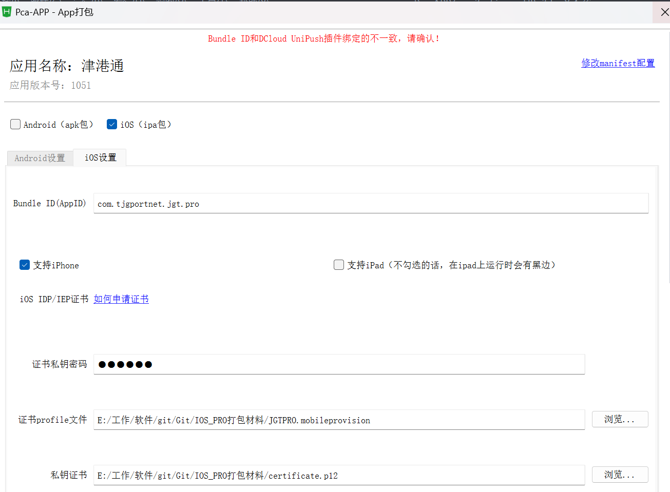 用com.tjgportnet.jgt.pro打包提示“bundle id与dcloud unipush插件的绑定不一致”,用com.tjgportnet.jgt不提示