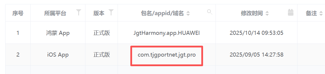 每次打包就提示,bundle id 原来是com.tjgportnet.jgt 从网页后台修改为com.tjgportnet.jgt.pro之后貌似没有生效 打包时录入com.tjgportnet.jgt就不会提示 但是我现在需要用com.tjgportnet.jgt.pro