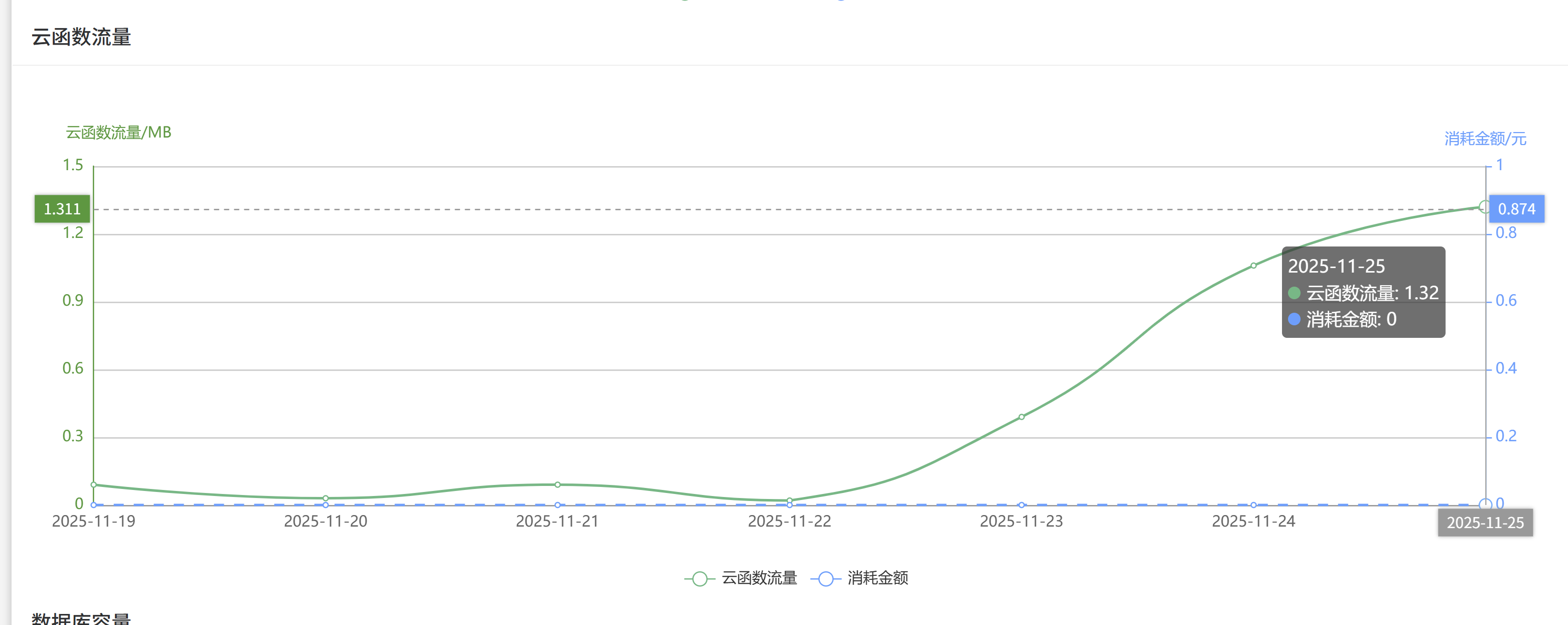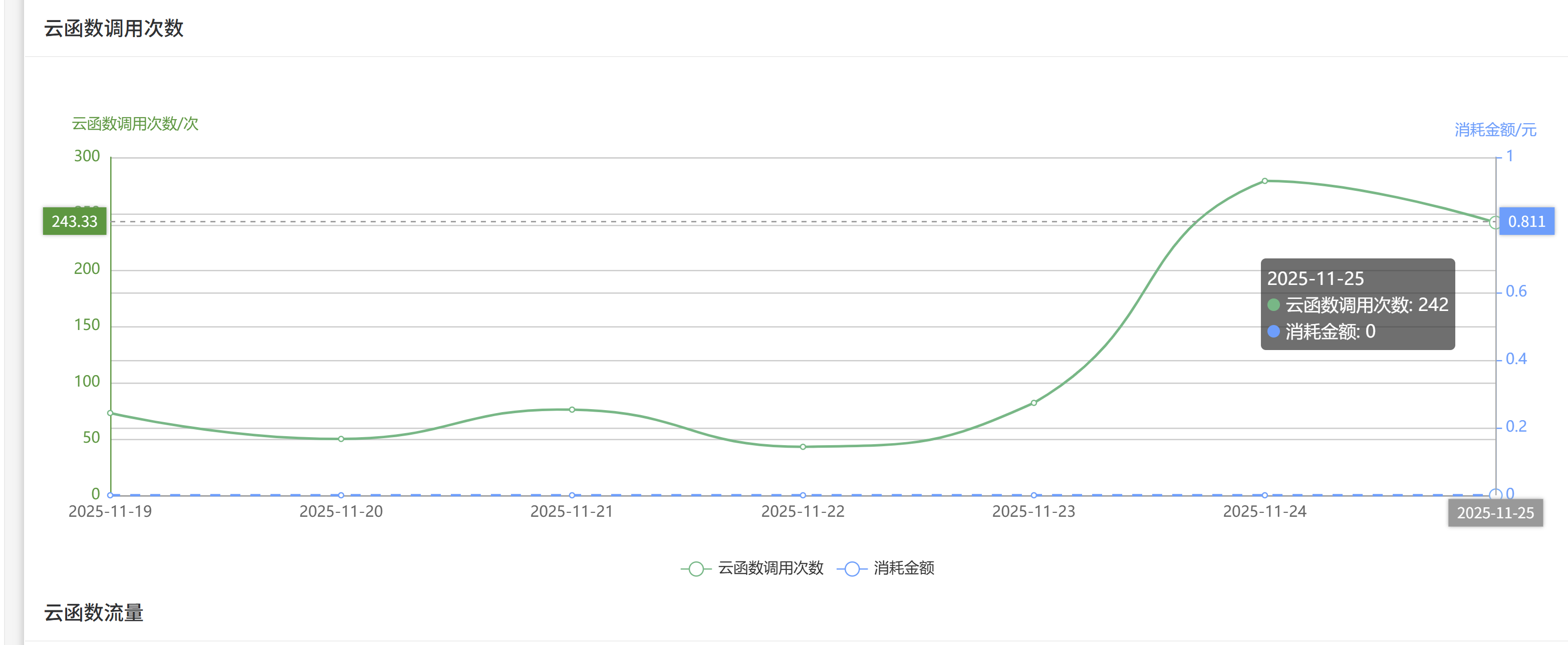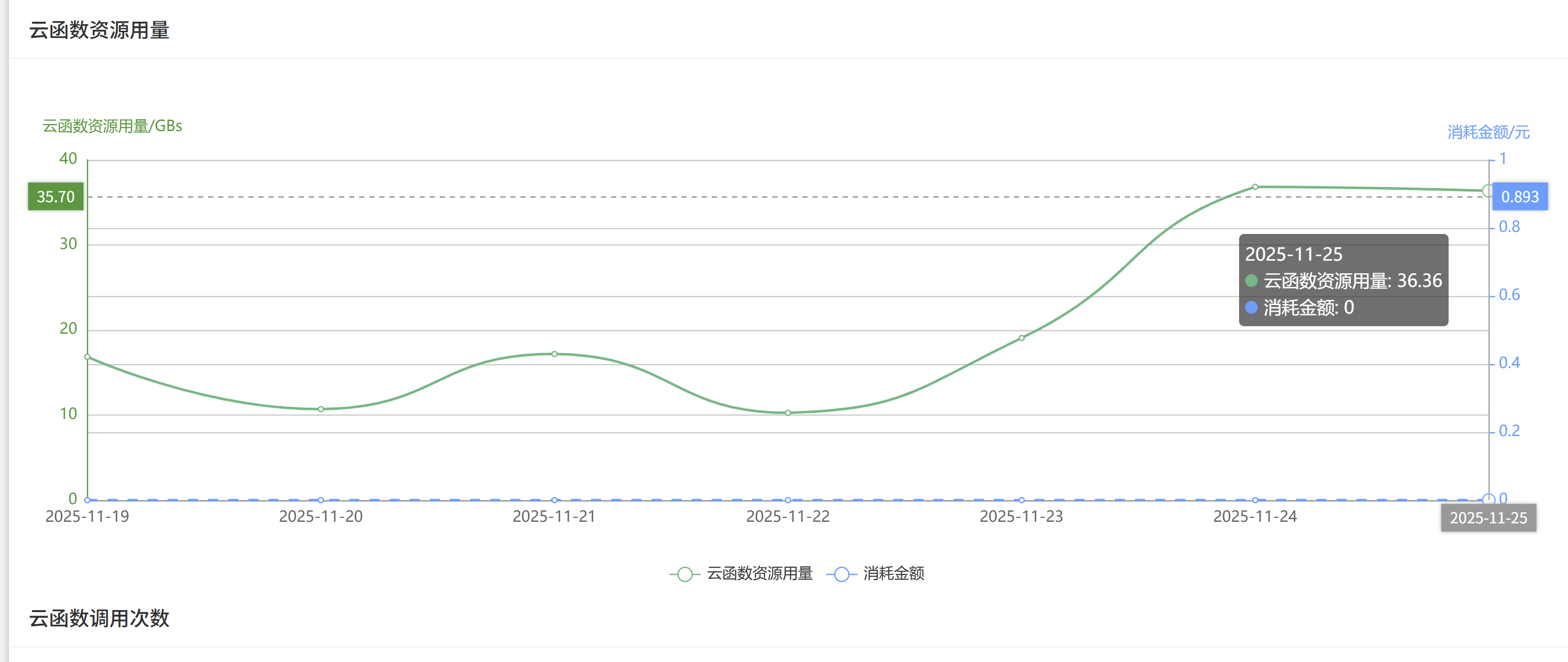 如附件图片,charts图显示不正确,拿云函数调用次数举例,应该是调用次数(万次)才0.0133元,但是我第二张图,