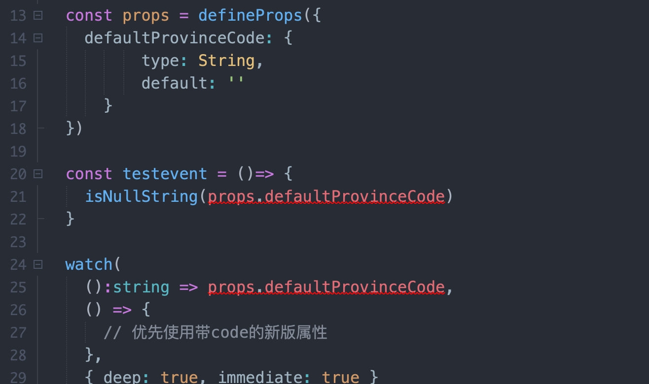 定义了一个prop字段是defaultProvinceCode,然后使用我定义的一个工具函数判空的时候,报类型不匹配
