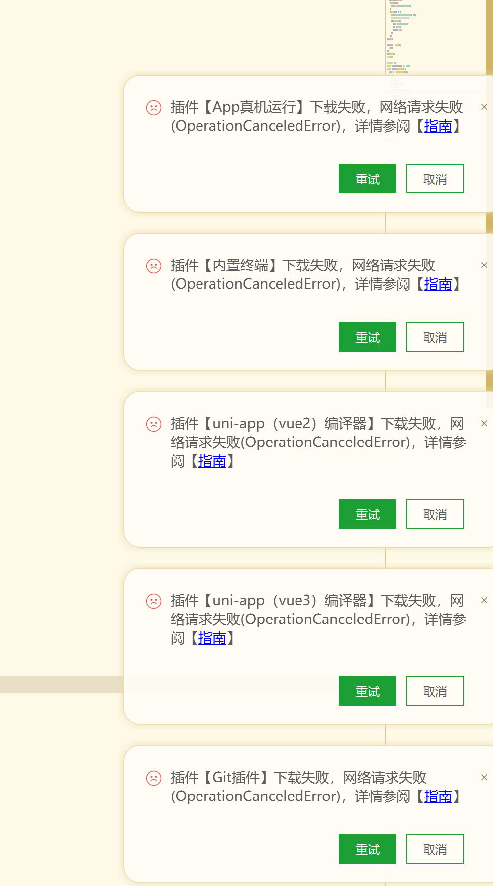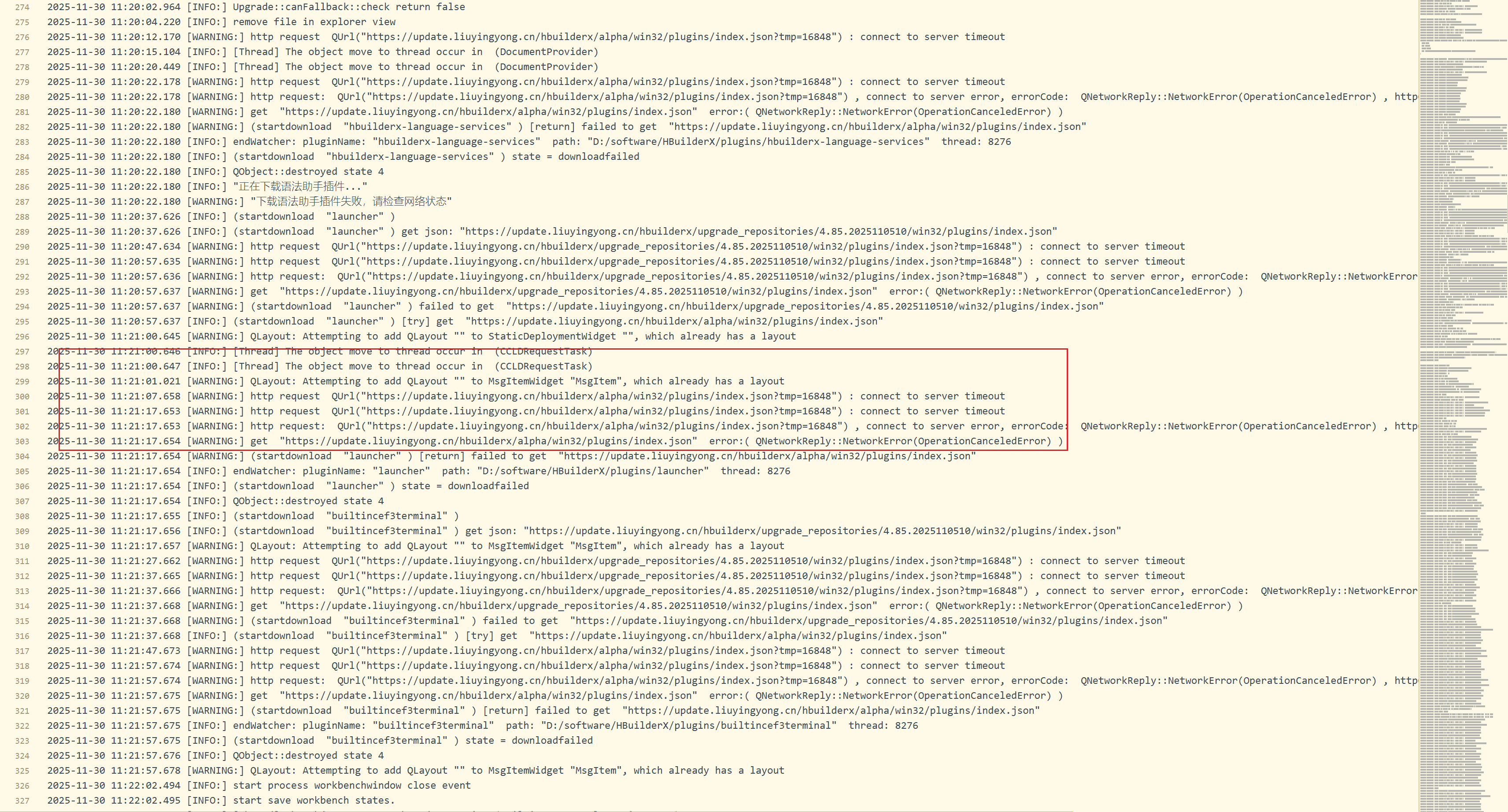 更多详情请参考插件安装失败问题汇总文档。若问题持续,建议通过HBuilderX菜单【帮助】【查看运行日志】获取具体错误信息,或联系官方支持(QQ群:HBuilderX)。