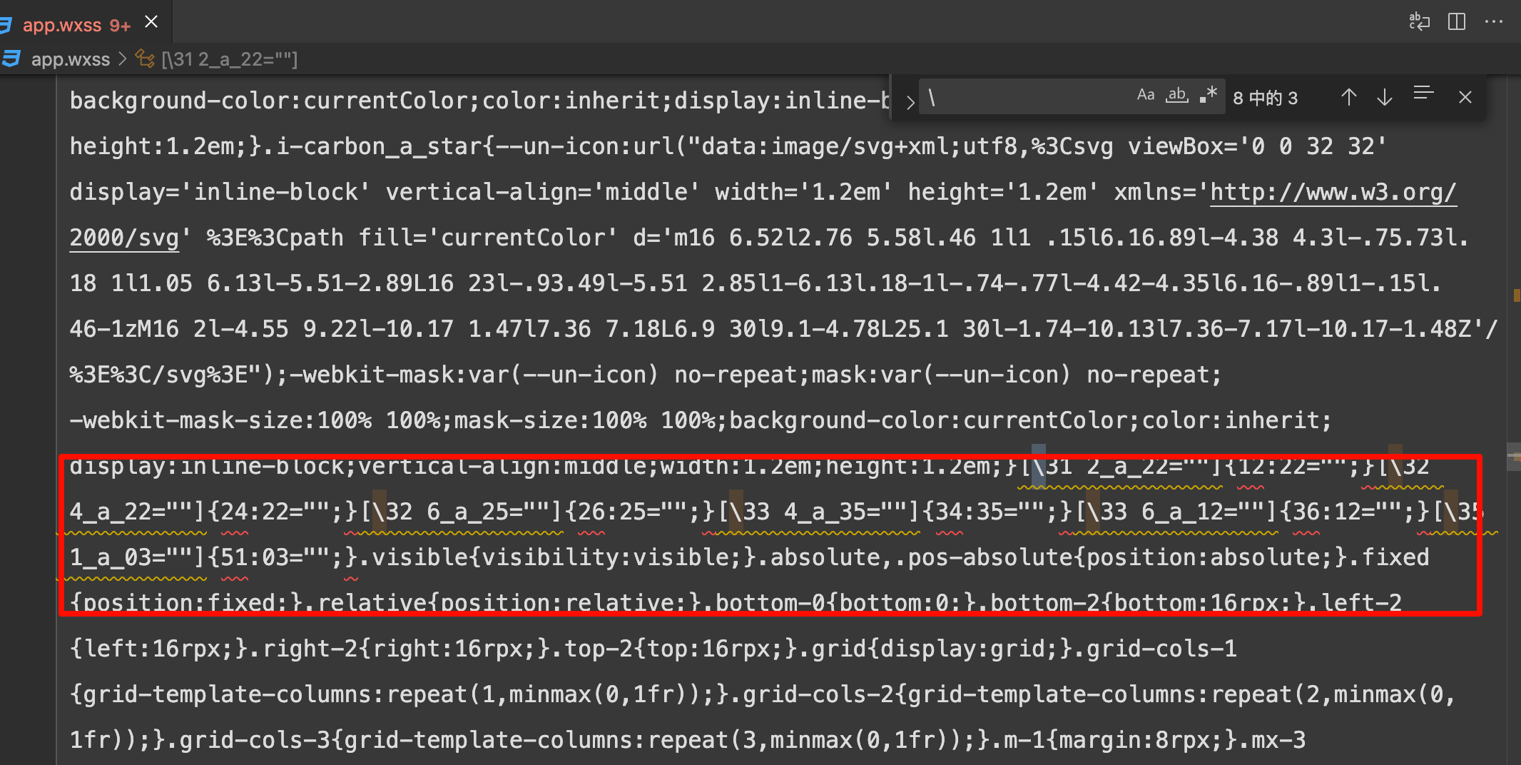 uniapp的vue3版本,使用到了unocss;最终编译到微信小程序,控制台报错 ./app.wxss unexpected \ at pos