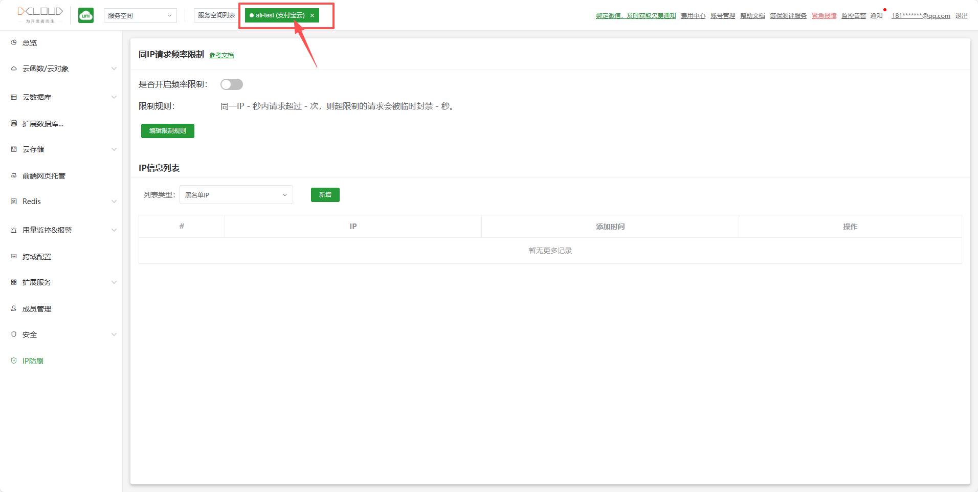 - 支付宝云服务空间的IP防刷是默认集成的,不需要额外开通Redis