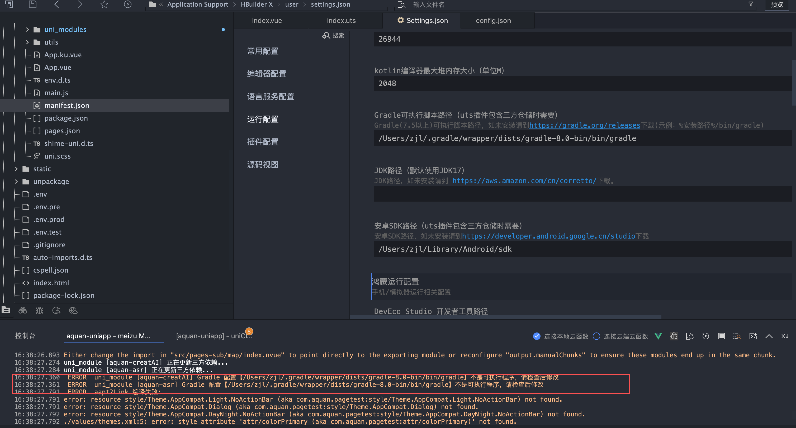 确认Gradle路径正确:在HBuilderX的【设置-运行配置】中,Gradle路径应指向解压后bin目录下的执行文件: