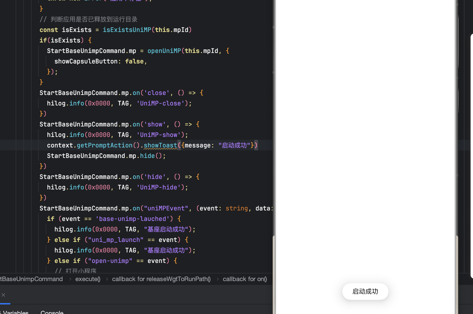 hide隐藏小程序之后,showToast是正常执行的,显示效果也正确,如果不隐藏,就会盖住原生的showToast效果