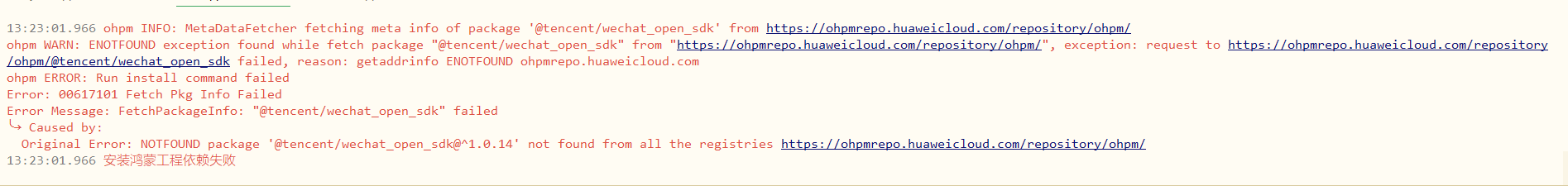 鸿蒙项目 就配置了微信授权登录 然后运行到模拟器上面 控制台就直接报错 提示 sdk下载不下来 没别的操作了