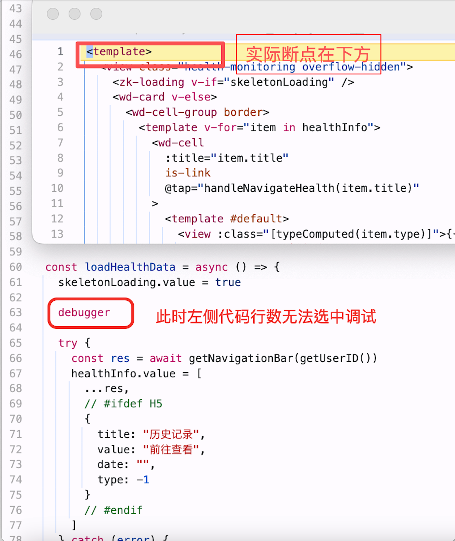 项目是通过官方提供的 uni-preset-vue#vite-ts 预设模版搭建的 H5 网页项目,目前断点在游览器上源码映射失败只能停留在最上层,并且无法指定代码行数。
