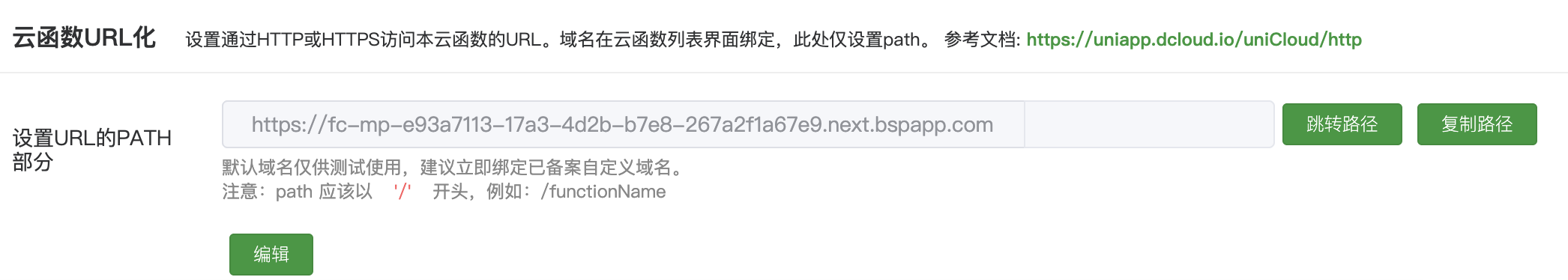 前端 时间 创建 的云对象 , 系统 自动 提供 URL 化 地址 , 我只需要 /functionName , 请看图片