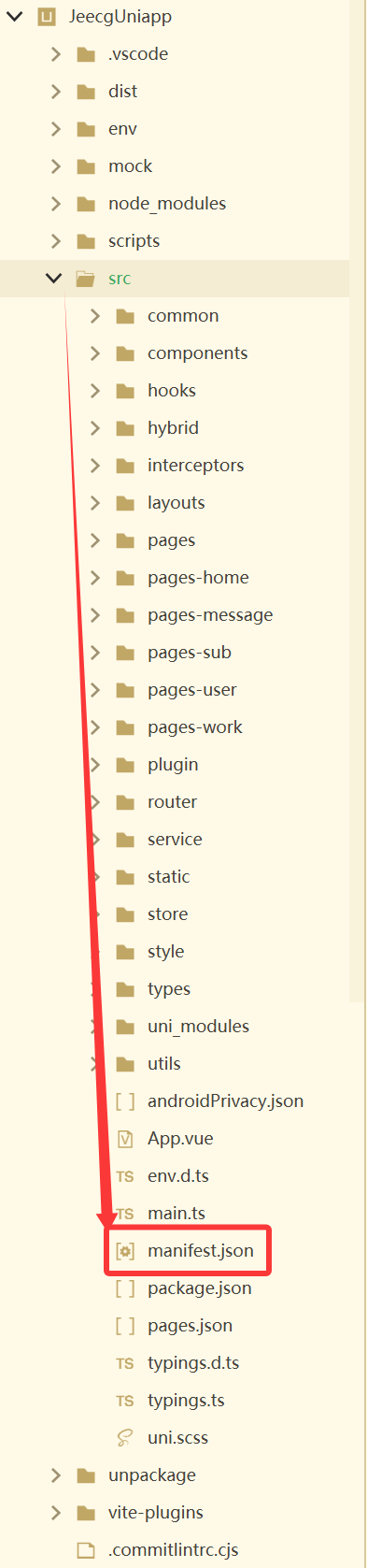 manifest.json在src下,我拉取jeecg代码默认是在src里面的