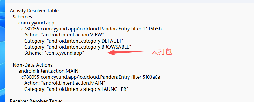adb shell dumpsys package com.cyyund.app > D://package_info.txt