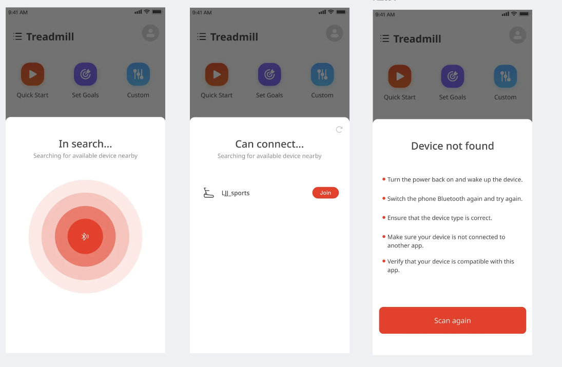 点击快速开始,会打开弹窗,进行蓝牙搜索。可重复进行打开、关闭弹窗进行测试。