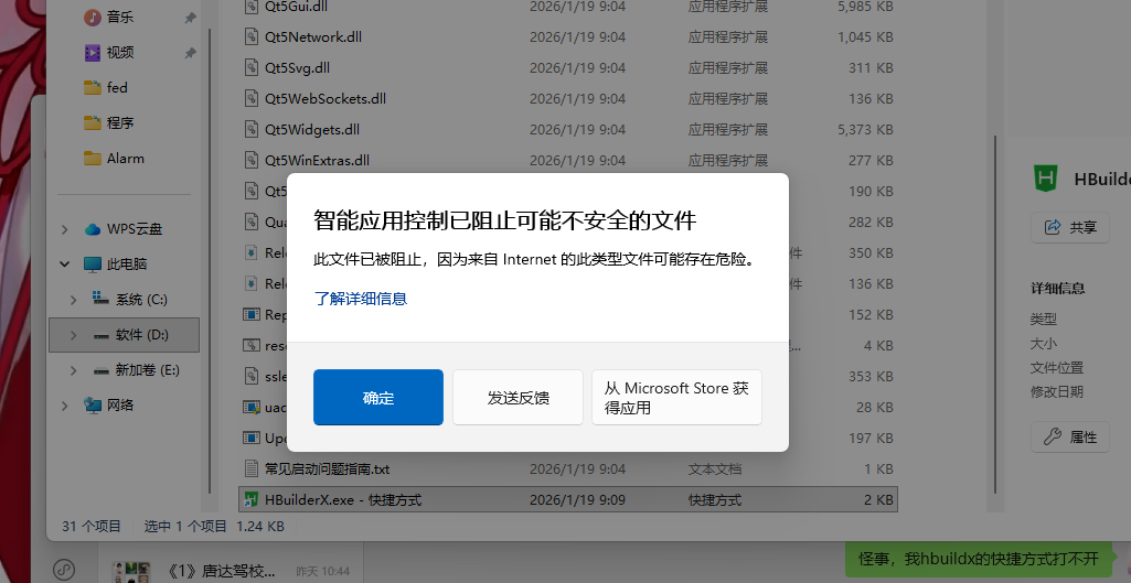 Hbuildx下载后创建的快捷方式没法用,exe文件可以启动。关闭防火墙,软件,重启,重新下载都不行