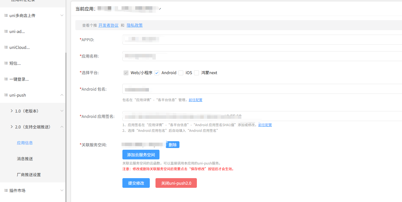 云打包提示应用尚未开通uni-push2.0服务,但是平台上已经配置过了 这个怎么解决?跟给命名空间续费有关系吗?