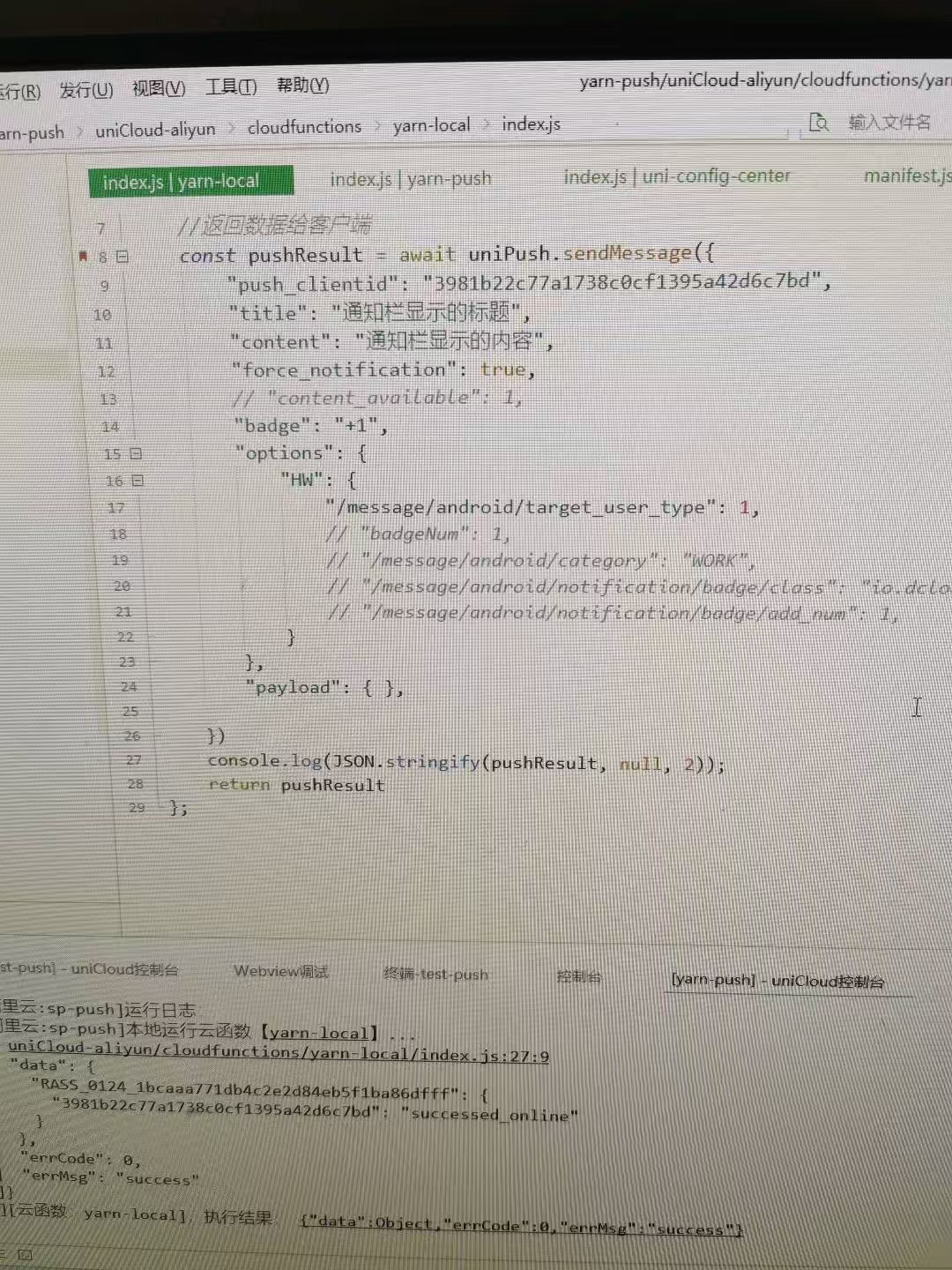 const uniPush = uniCloud.getPushManager({