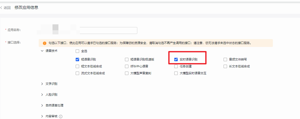 如图,IOS端发现开通的时候必须勾选“实时语音识别”才可以,如果只勾选短语音,安卓可以,ios会报错。