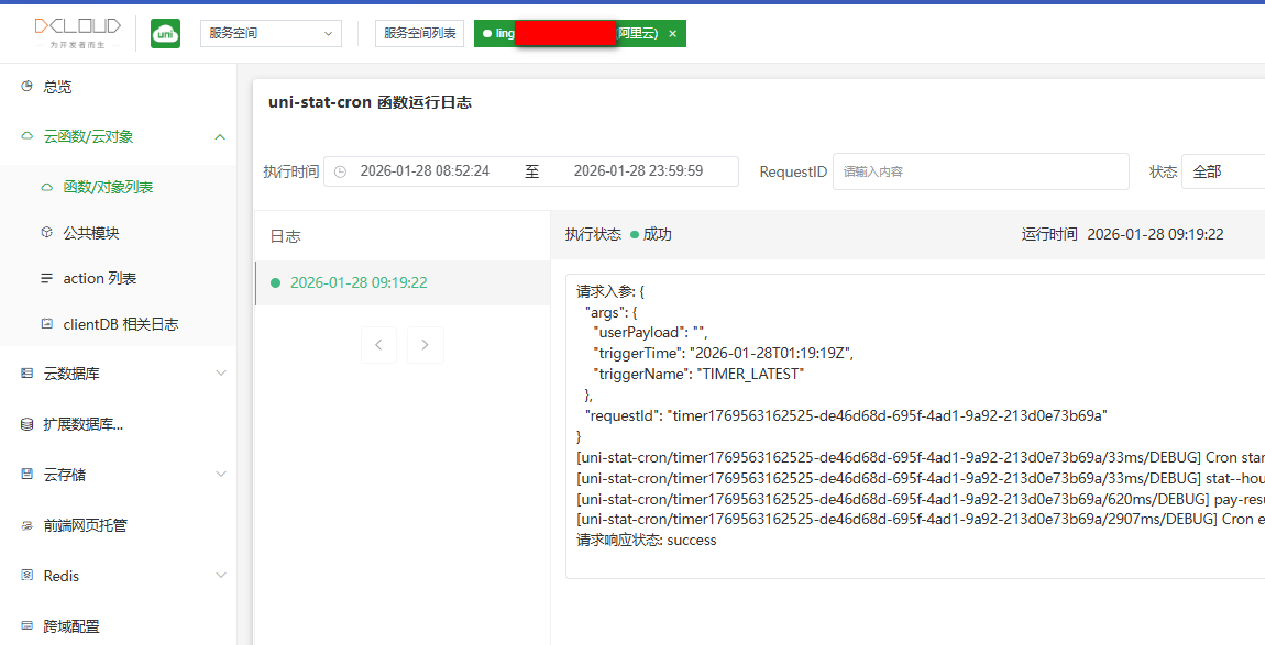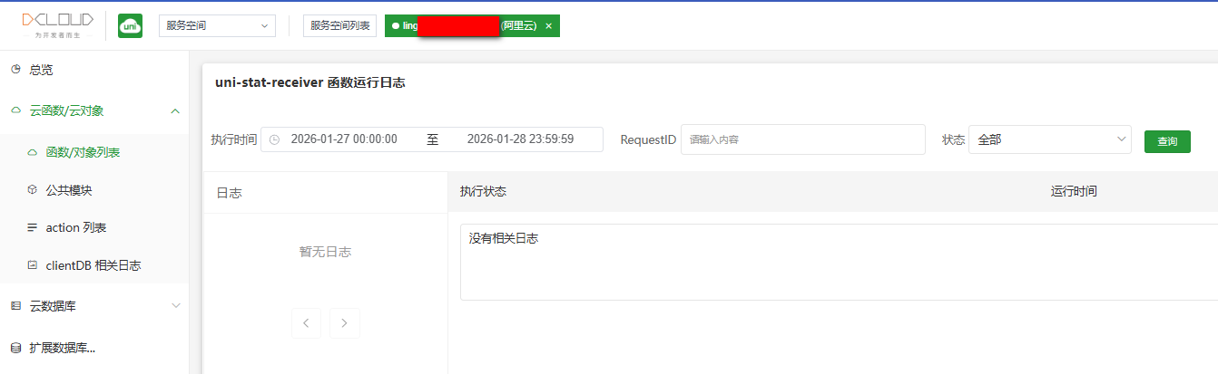 其中,uni-stat-receiver云函数没有请求日志