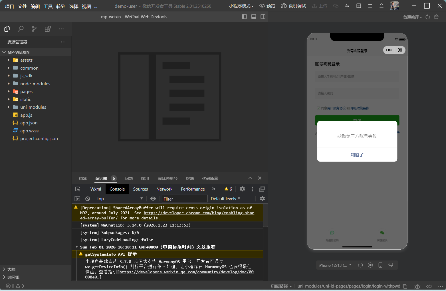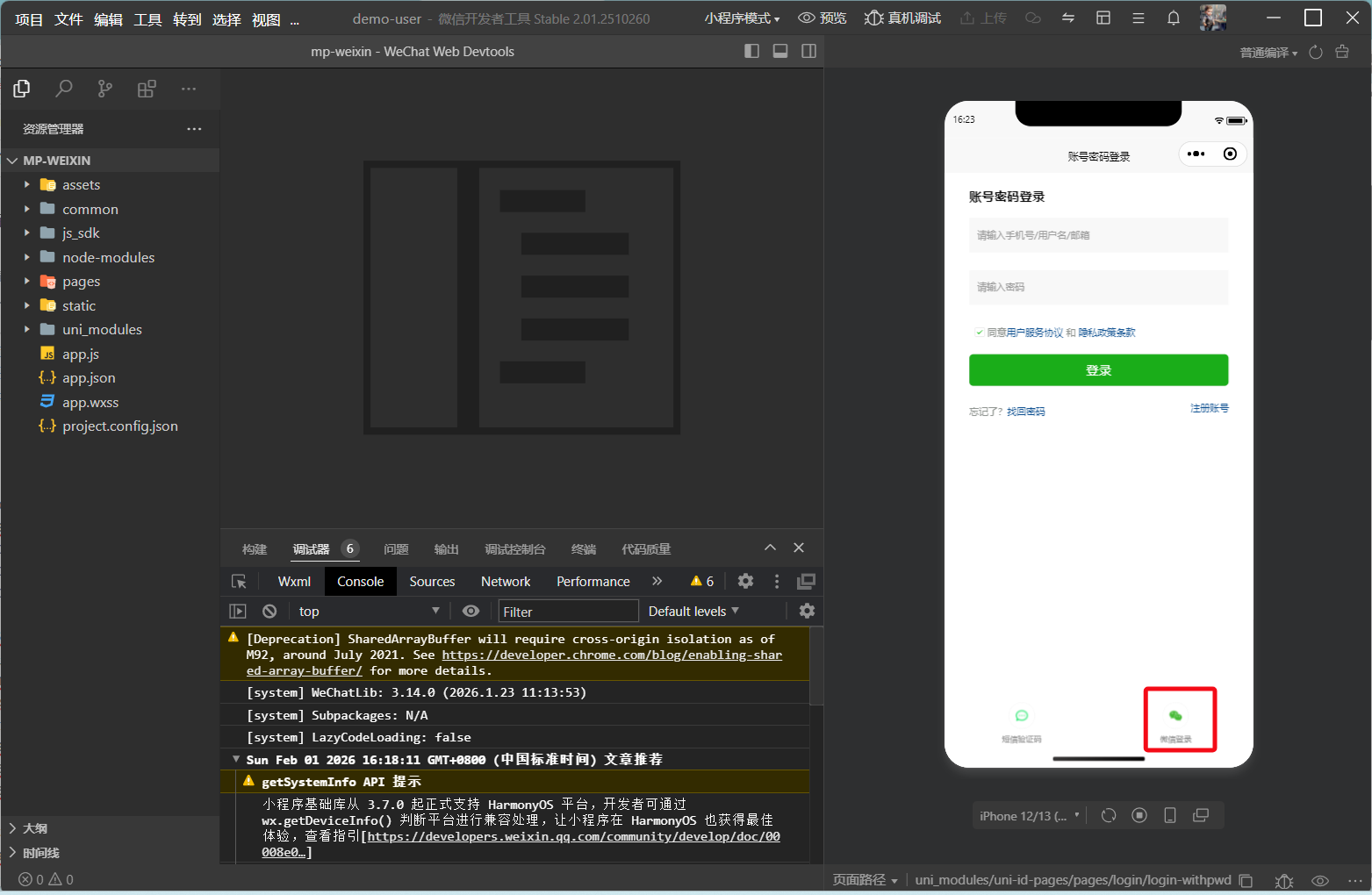 [uni_modules/uni-id-pages/pages/login/login-withpwd] Some selectors are not allowed in component wxss, including tag name selectors, ID selectors, and attribute selectors.(./uni_modules/uni-id-pages/components/uni-id-pages-agreements/uni-id-pages-agreements.wxss:26:1)