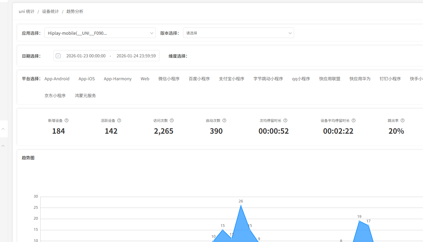 - 新增设备:只要该设备首次在你的应用里产生过任何一次事件(哪怕只启动一次就卸载),当天就会被记为 1 台新增设备;后续即使再也不出现,这台设备依旧保留在“总设备数”里,不会从“新增”里扣除。
