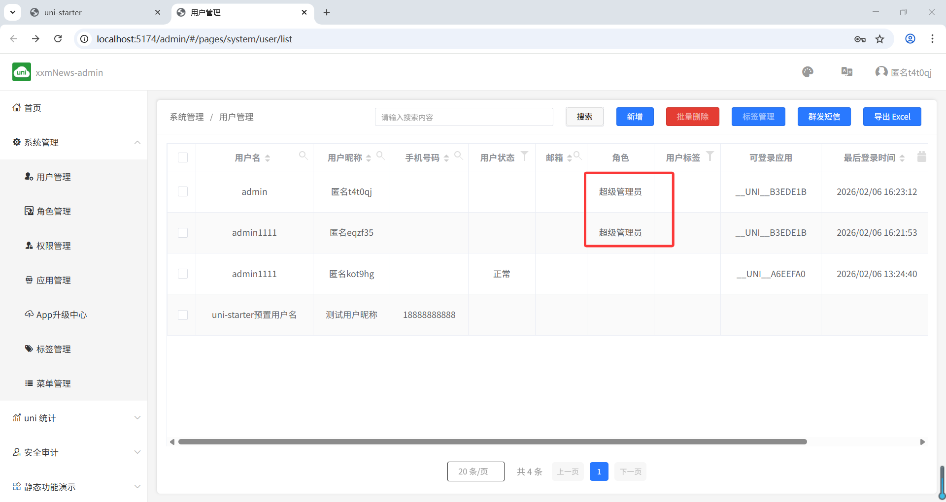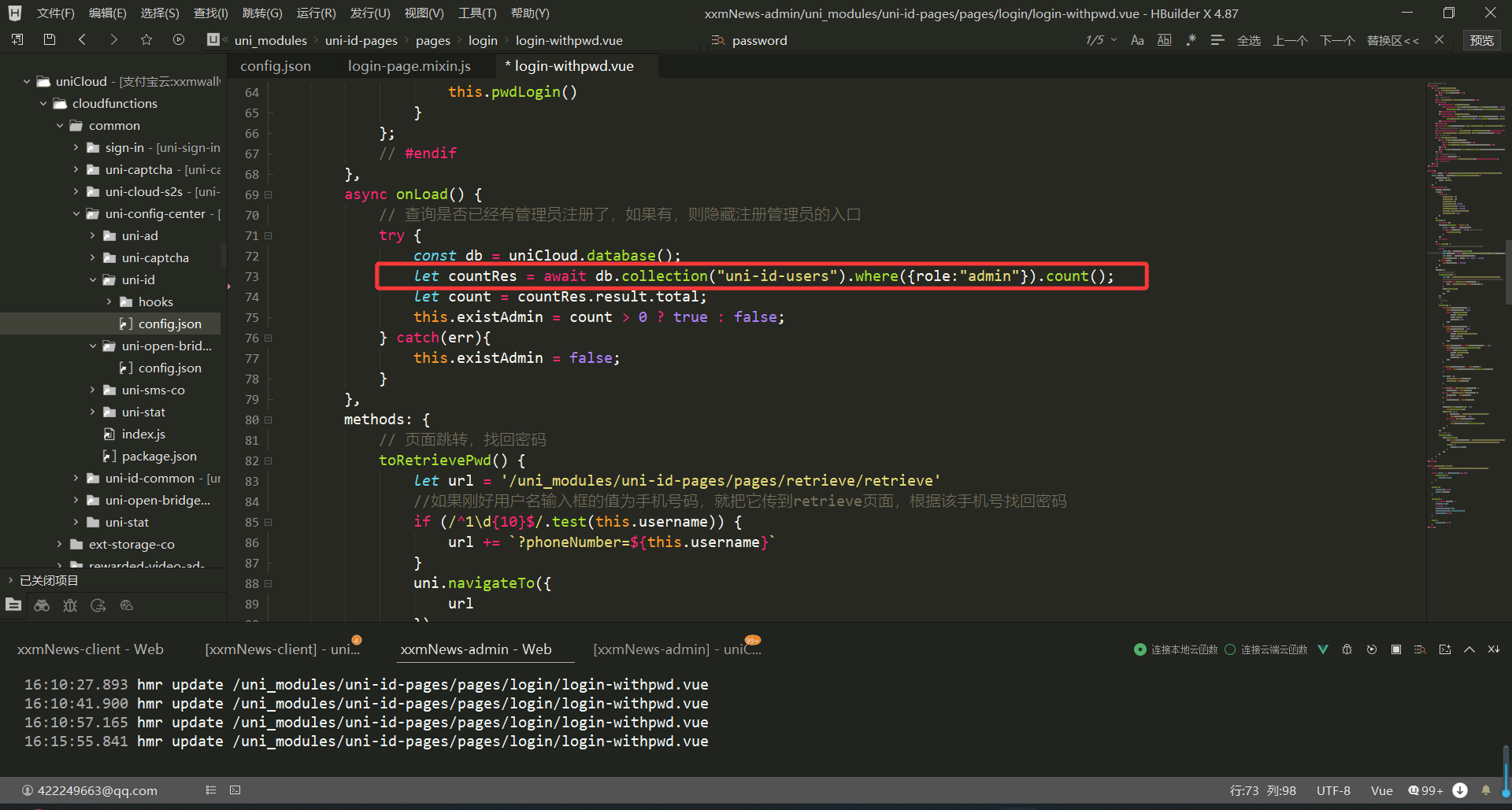 这里的 let countRes = await db.collection("uni-id-users").where({role:"admin"}).count(); 读取不到数据,数据库是有数据的