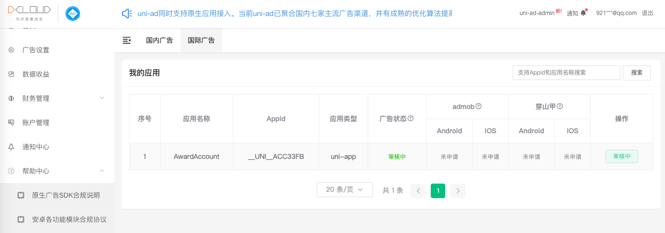 uniad@dcloud.io,标题注明“国际广告审核超期 + AppID”。 官方运营收到后会人工核查并给出具体原因或加急通过。