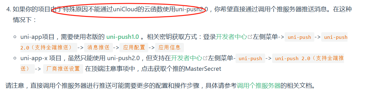 uni-app-x 项目,虽然只能使用 uni-push2.0,但支持在开发者中心左侧菜单-uni-push->uni-push 2.0(支持全端推送)-> 厂商推送设置 在顶端注意事项中,点击获取个推的MasterSecret