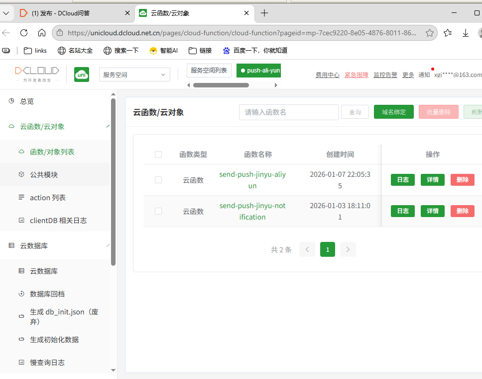 - 即可进入云函数列表页面,查看和管理所有云函数。