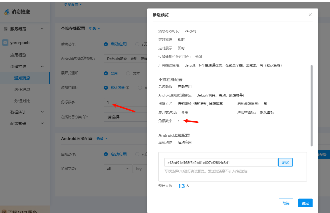 - 若后台页面推送能收到,仅能证明 socket 通道正常,不能证明厂商通道已通。