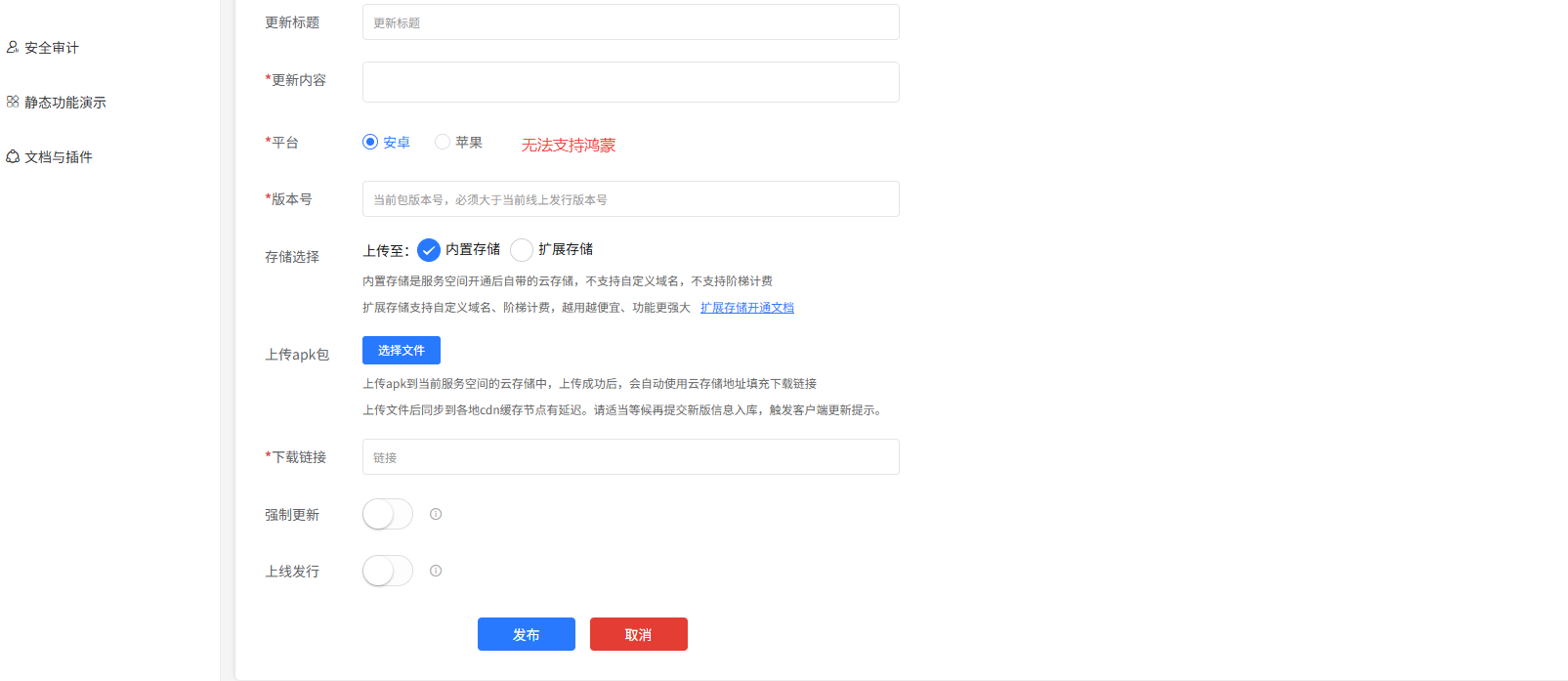 uni升级中心 - 客户端检查更新-uni-upgrade-center-app(https://ext.dcloud.net.cn/plugin?id=4542),已经能够正常进行Android、iOS的整包更新、热更新,uni升级中心 - 后台管理系统如下附件截图1,没有鸿蒙平台。后台和客户端检查更新的版本如何更新后支持鸿蒙平台?