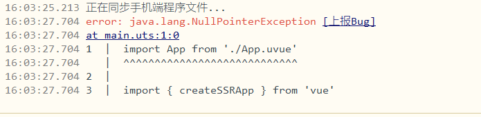 说明编译器在尝试解析 main.uts 文件时,在 import App from './App.uvue' 这一行抛出了空指针异常(NullPointerException)。即使你把 App.uvue 的内容全部注释掉,问题依旧存在,说明不是 App.uvue 本身的内容问题,而是文件路径或模块解析机制出错。