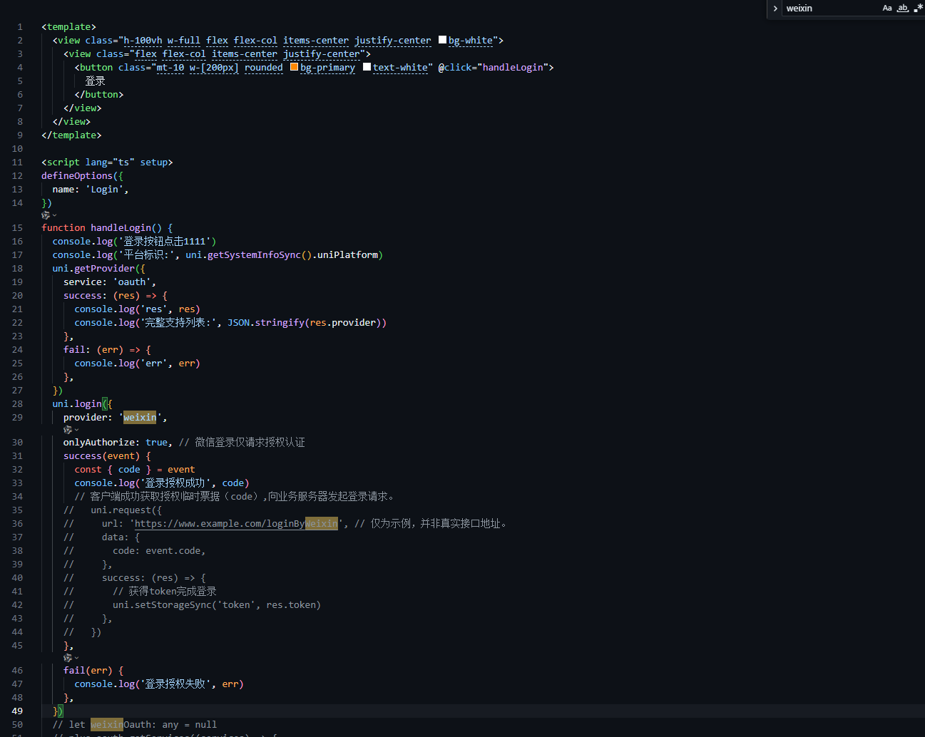 uni.login的provider: 'weixin',鸿蒙平台目前不支持该方式唤起微信授权;uni.getProvider检查当前平台是否支持微信登录,如返回空数组,说明当前环境未集成微信登录能力。✅ 推荐做法