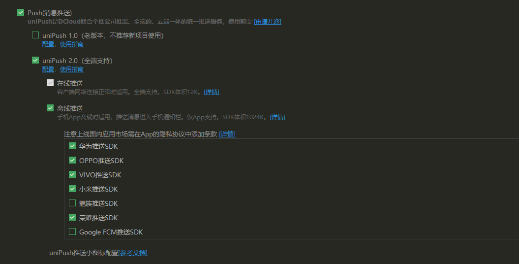 我是云打包 unipush也勾选了