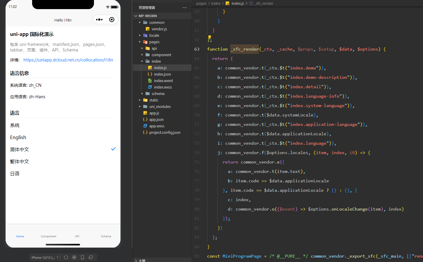 使用的是官方的hello-i18n示例工程,vue3版本运行到微信小程序