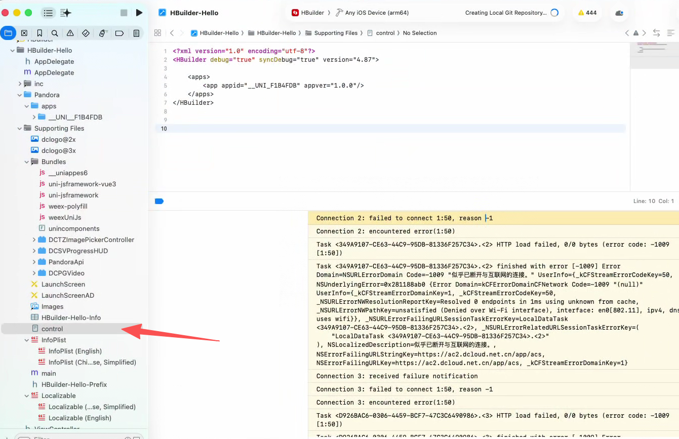 问题1:iOS原生工程有control.xml文件,报错:读取自定义基座control.xml文件失败