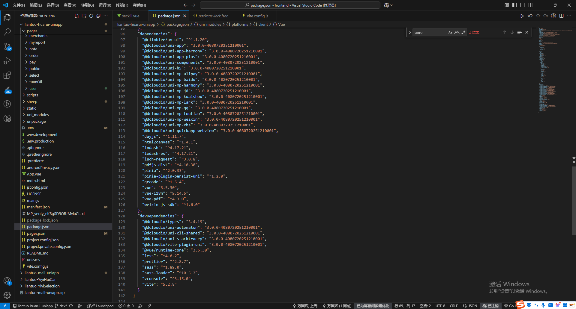 uniapp项目运行到到微信开发者工具,编译阶段报错,检查了这个文件代码没有使用unref,子组件有使用unref,但子组件也没有重复引入unref