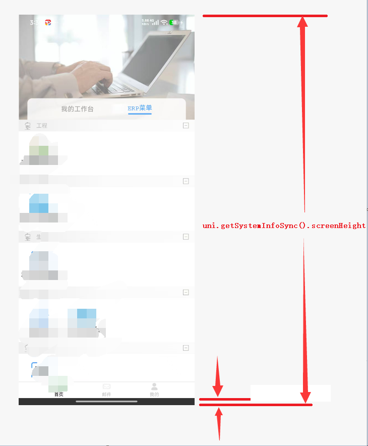 经认真检查, 发现 uni.getSystemInfoSync().screenHeight, 是整个屏幕的高度.(它已包含了屏幕底下的黑条高度)