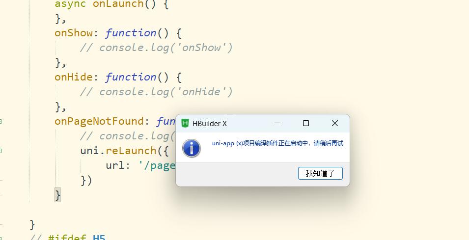 抱歉,我在知识库中没有找到关于 "uni-app(x)项目编译插件正在启动中,请稍后再试" 这个错误提示的相关信息。