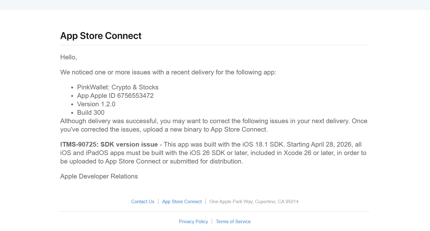 如果你现在上架 App Store 时收到提醒:"Starting April 2026, all iOS and iPadOS apps must be built with the iOS 26 SDK or later",请按以下步骤解决: