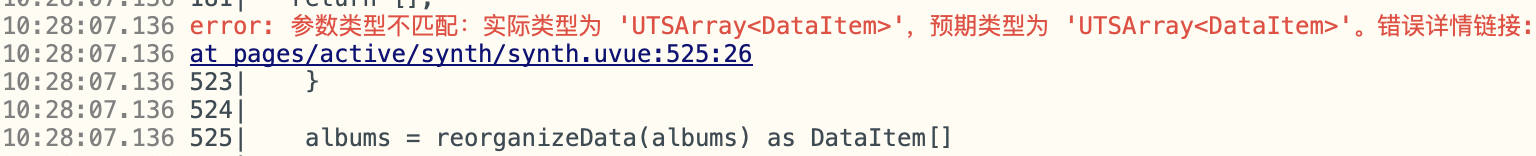抱歉,我在知识库中没有找到关于 "UTSArray<DataItem>" 类型明明匹配却报参数类型不匹配错误的直接说明。