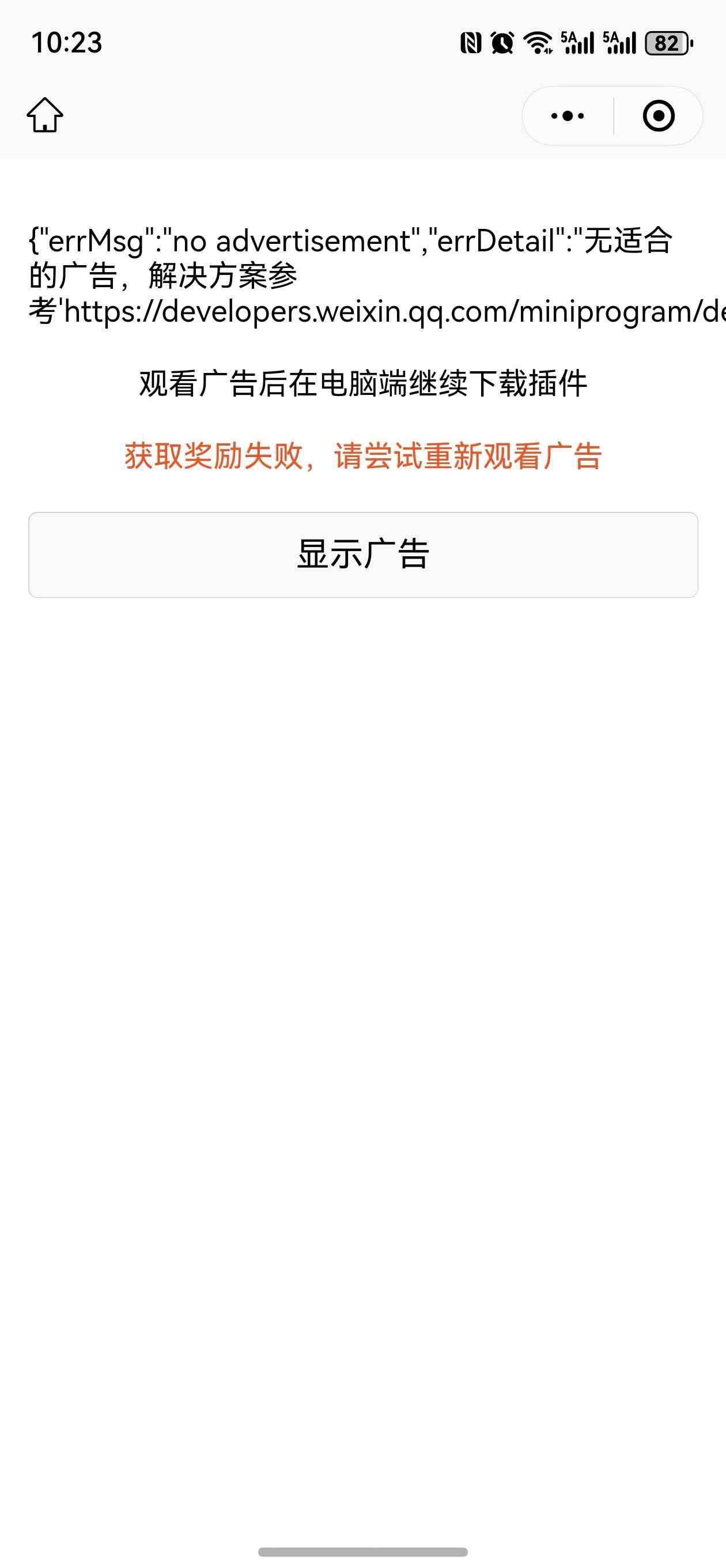 - 错误码 -5005:广告加载失败,请稍后重试,可能是网络问题或广告填充不足