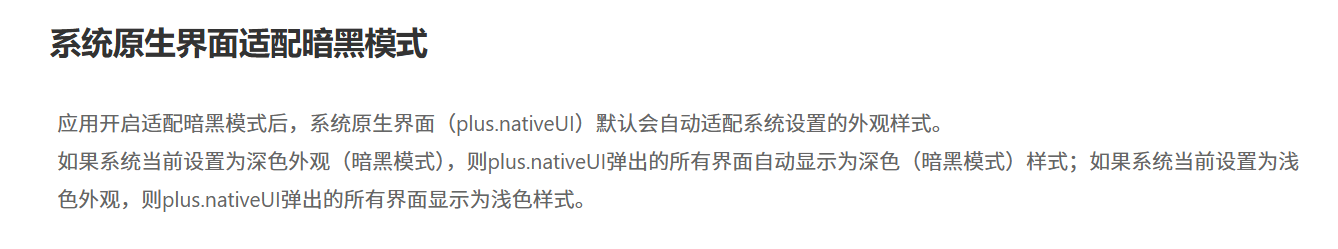 如果新版本以后要求APP环境下 plus.nativeUI.setUIStyle('auto') 必须要写,麻烦在文档(https://uniapp.dcloud.net.cn/tutorial/darkmode.html)重点标注一下。