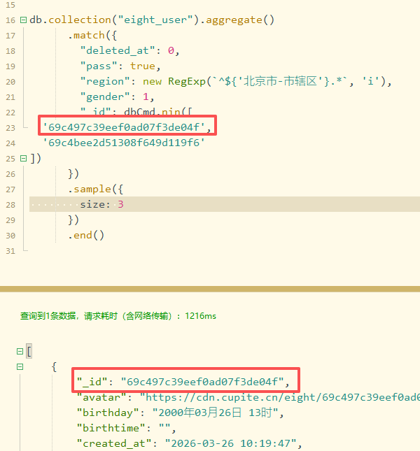 - 待查询的数据结构示例(包含_id字段的样本数据)