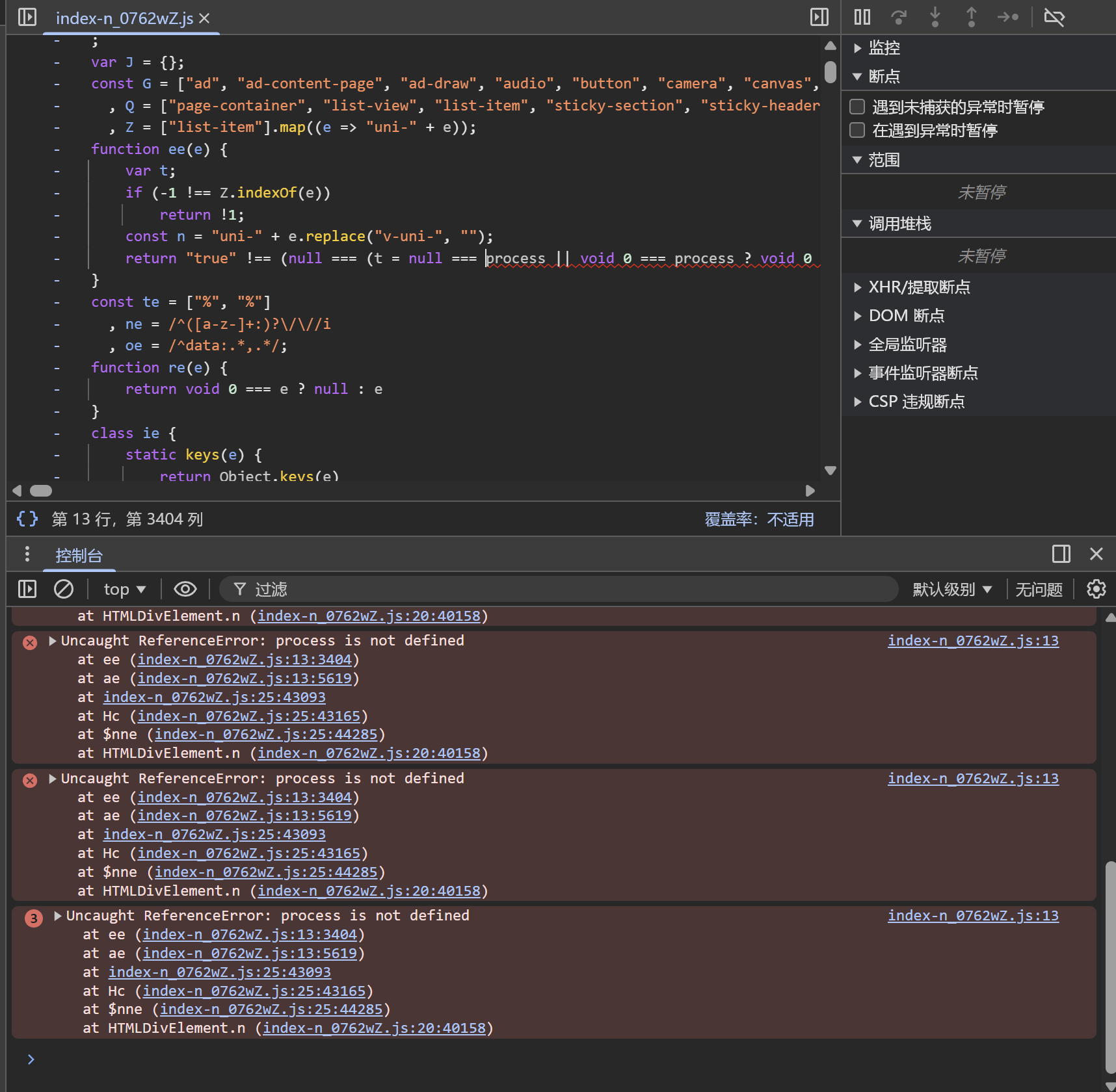 打包后,拉起项目,只能进入首页,控制台报process未定义错误,无法点击任何菜单和链接。