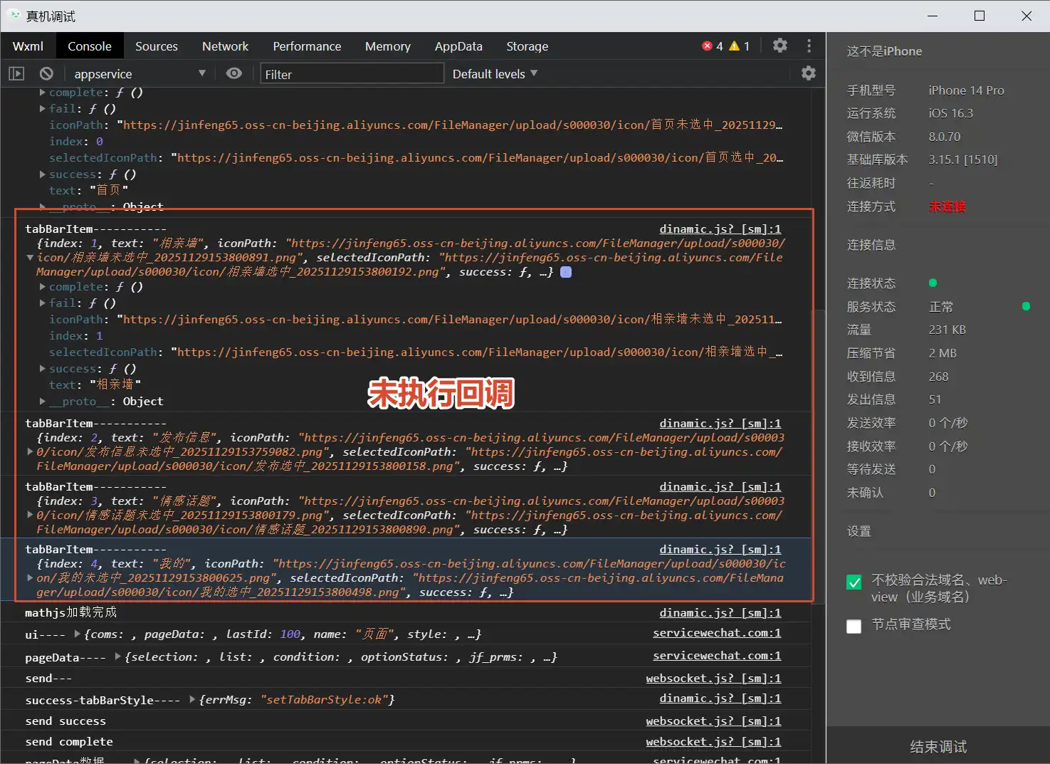 在IOS真机调试时,使用wx.setTabBarItem设置tabbar不触发回调,开发者工具正常没有问题