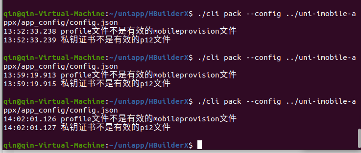 使用 Linux HBuilderX CLI 进行云打包的时候提示 profile文件不是有效的mobileprovision文件,以及私钥证书不是有效的p12文件