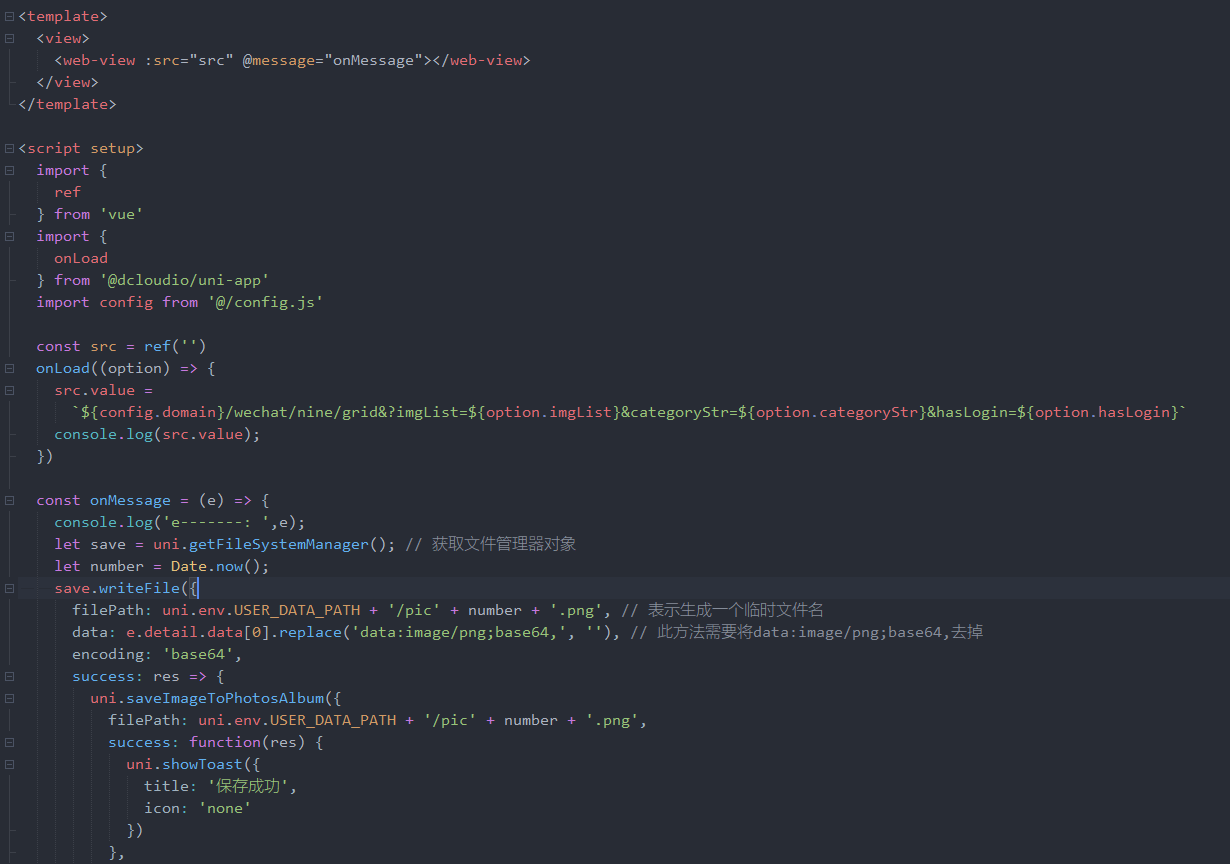swan-webview.js,调用的是哪个API) - 小程序端web-view组件的使用代码(事件绑定方式)