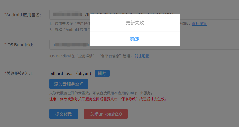 - 开通完成后,可在uni-push配置页面修改应用信息