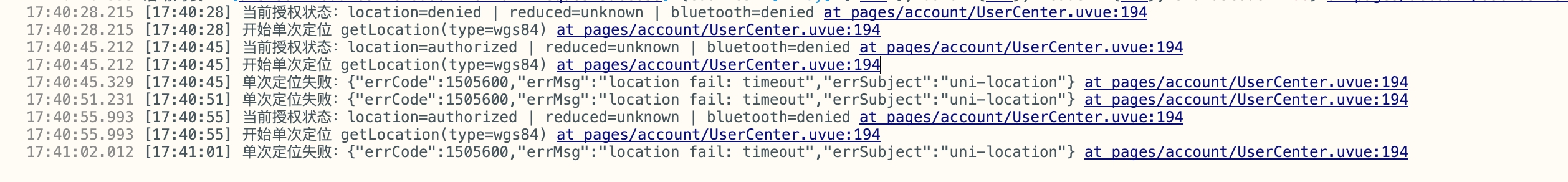 locationLastError.value = `单次定位失败:${JSON.stringify(err)}`;